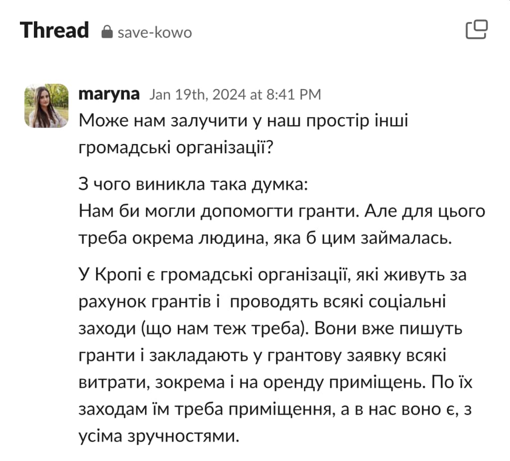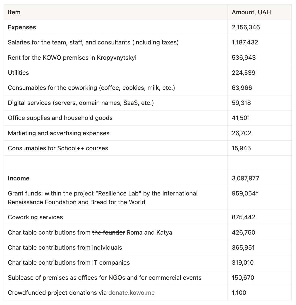 2024 began with the realization that we were short on money. It was getting harder to support KOWO (the offline space in Kropyvnytskyi) and to remain the primary donors. We seriously considered closing the space and, of course, shared this with our team right away.